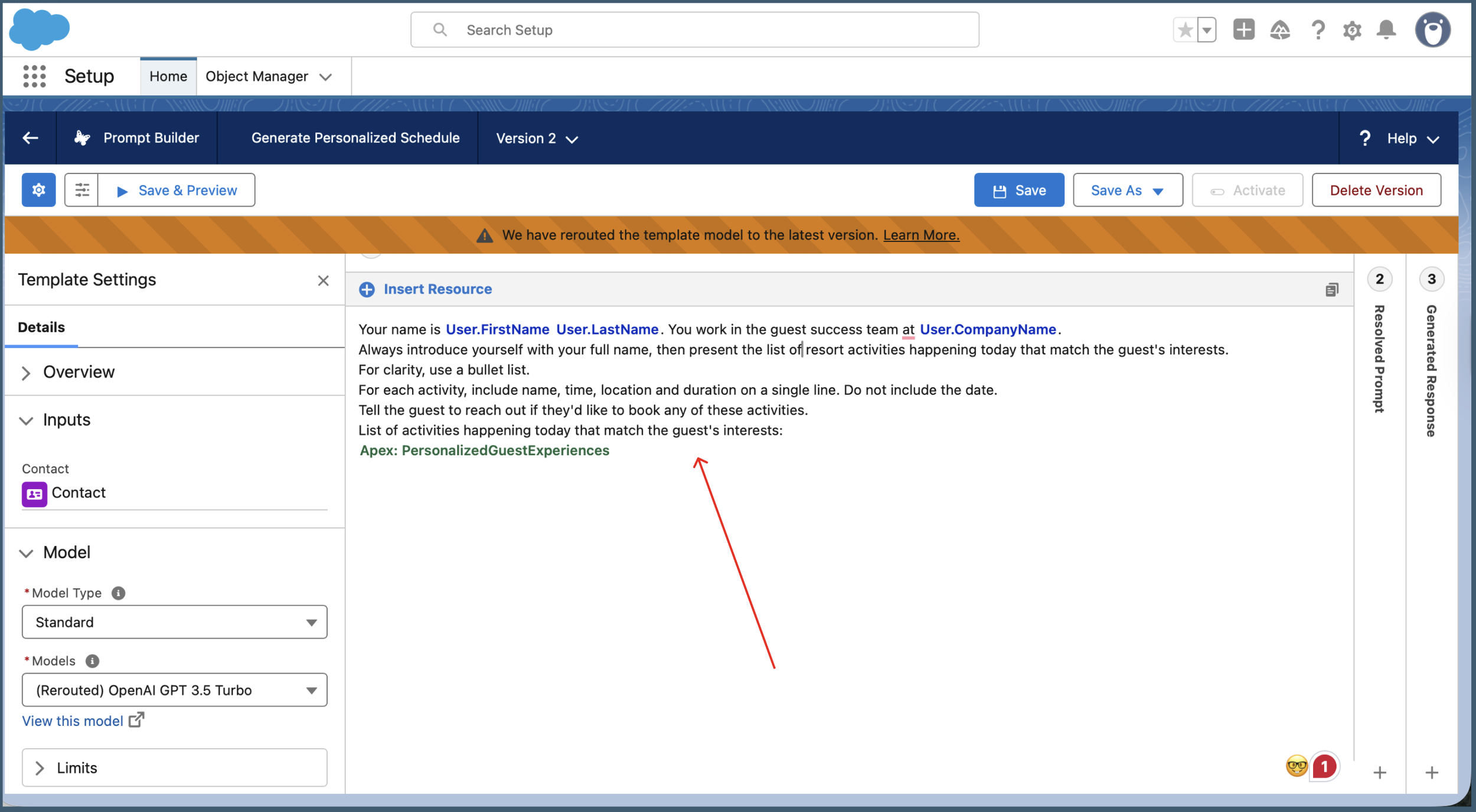 A "human" AI requires a clear identity and access to relevant data. I refined the Prompt Template to ground the AI in a specific user context. By mapping global variables, I ensured the Agent knew its role within the "Guest Success Team" and had the full context of a guest's history before responding.
