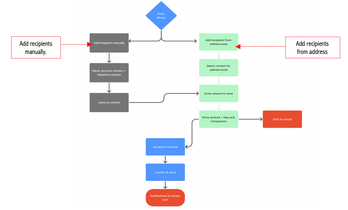 A design exploration to improve the remittance app’s user experience when sending money to sub-Saharan African nations.