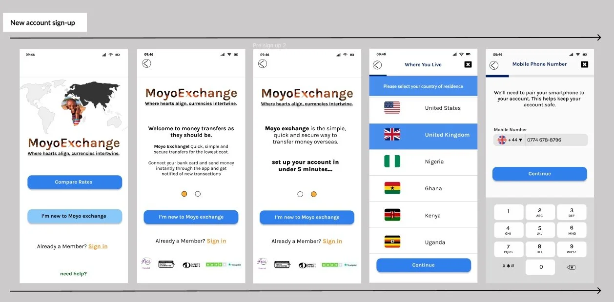 In a quest to gain insights into effective fintech app designs, services, and user onboarding experiences, I conducted benchmarking studies of various fintech apps, including Monzo Bank, Starling Bank, M-Pesa, Lemonade Finance (LemFi), and Wise.